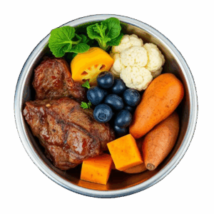 Divljač je bogata esencijalnim aminokiselinama, gvožđem, cinkom i vitaminima B-kompleksa. Tikvica i karfiol doprinose zdravlju probave i imunitetu, dok slatki krompir daje energiju i vitamin A za zdrav vid. Borovnica i jabuka obiluju antioksidantima, a riblje i suncokretovo ulje obezbeđuju omega-3 i omega-6 masne kiseline za sjajnu dlaku i zdravo srce.